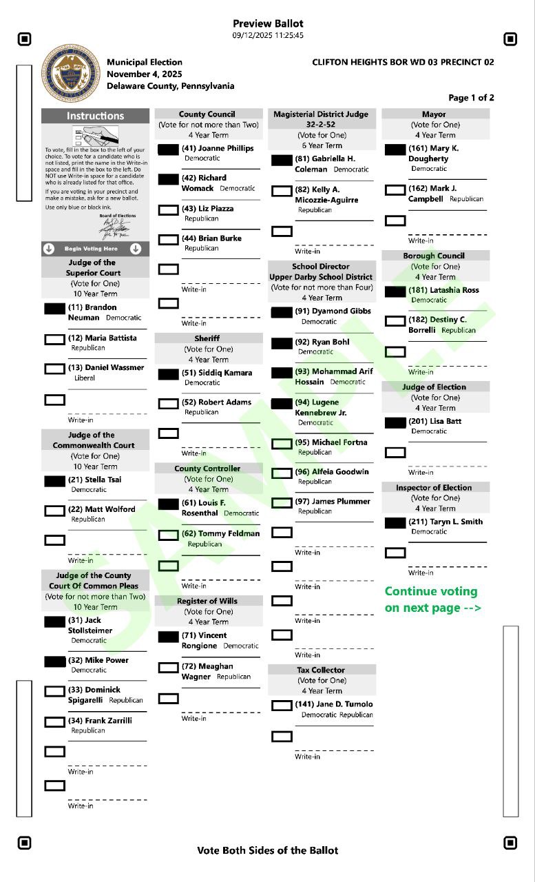 Rooted in service and guided by experience, Mary is ready to lead with care, clarity, and a deep commitment to the people of Clifton Heights.